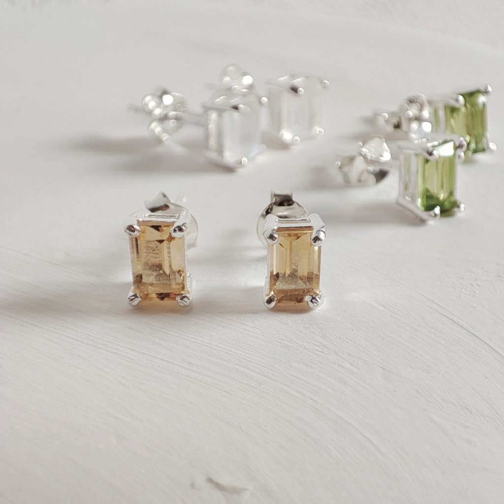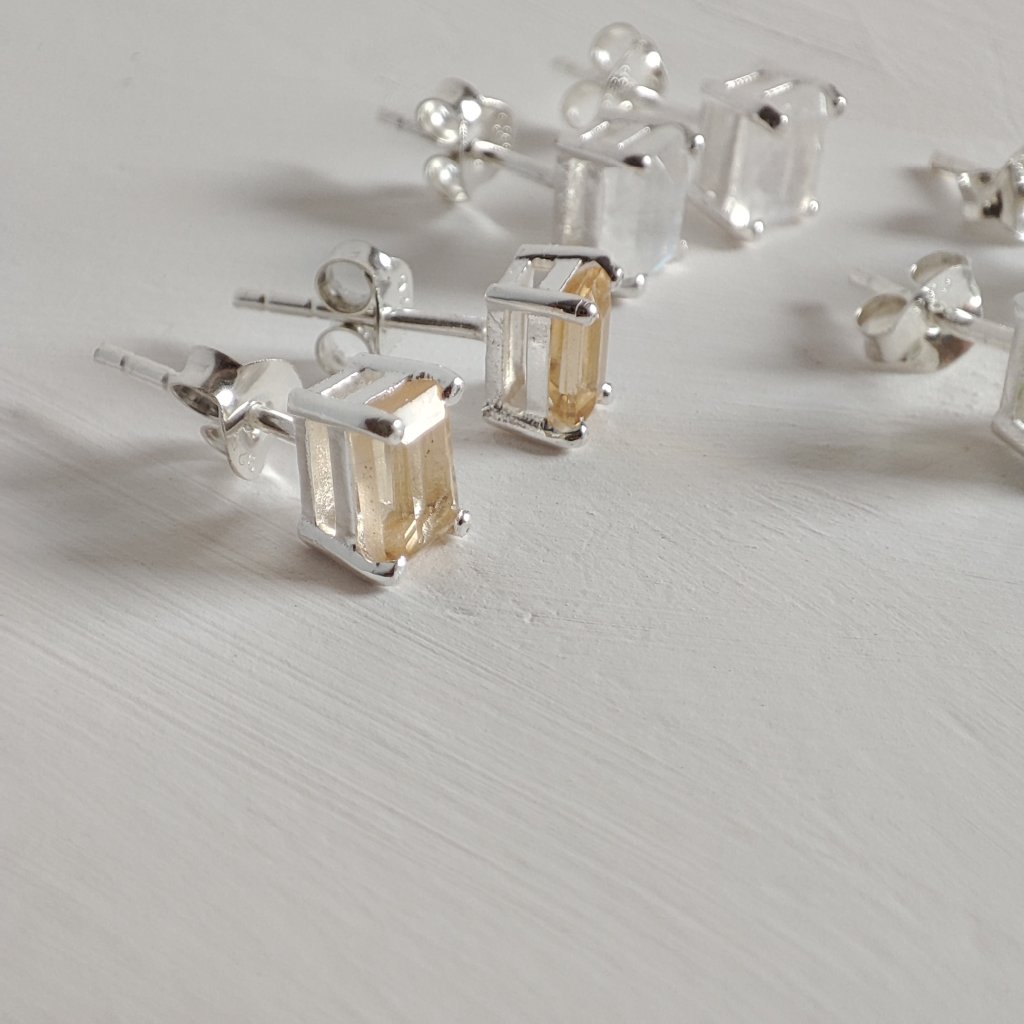 Kolekce broušených náušnic s pravými minerály. Citrín, stříbro, láska.💛