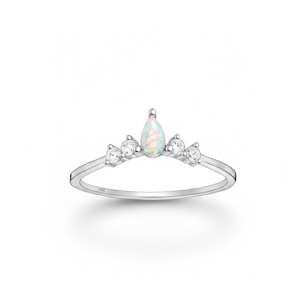 Nádherně ženský stříbrný prstýnek ve tvaru chevronu s kubickými zirkony a umělým opálem v krásném odstínu.