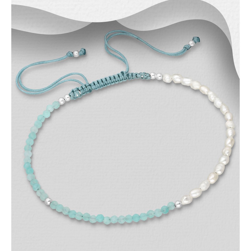 Kouzelný náramek v kombinaci drobných broušených kuliček oblíbeného amazonitu s říčními perličkami.