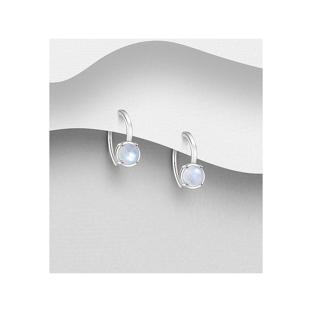 Stříbrné drobnější náušnice na háček s měsíčním kamenem.