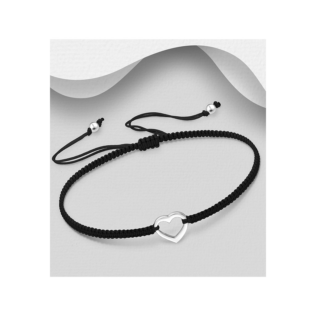 MILUJ náramek se stříbrným srdíčkem v černé barvě