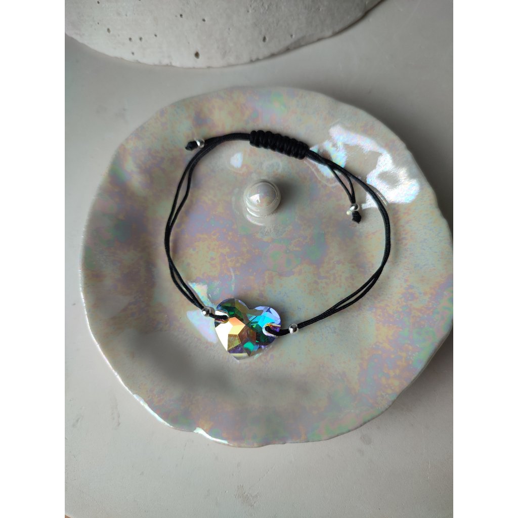 Krásný nastavitelný náramek na nylonovém provázku s nádherným třpytivým krystalem srdce.
