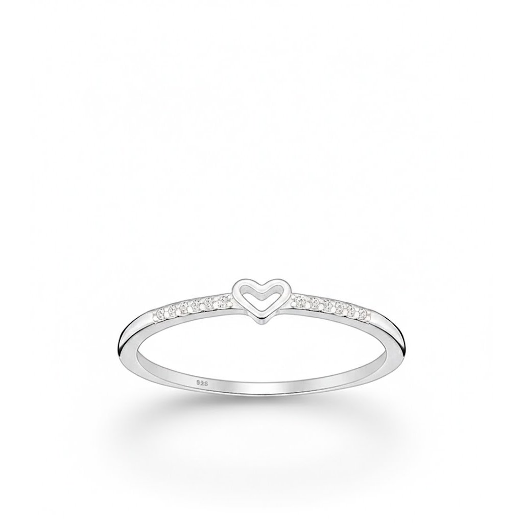 Prstýnek je vyroben z kvalitního stříbra 925/1000 bez povrchové úpravy, zdobí ho drobné kubické zirkony a symbol srdce.