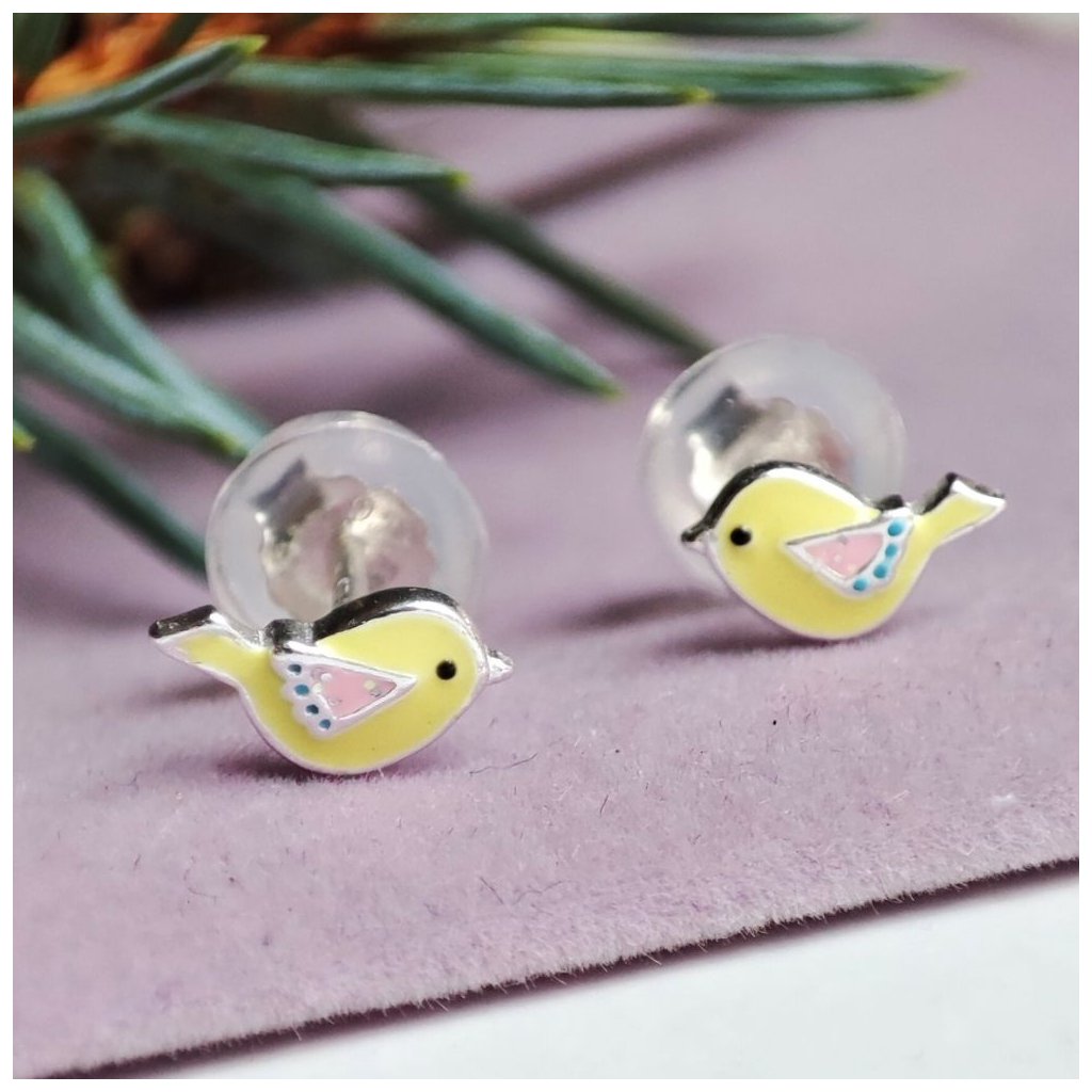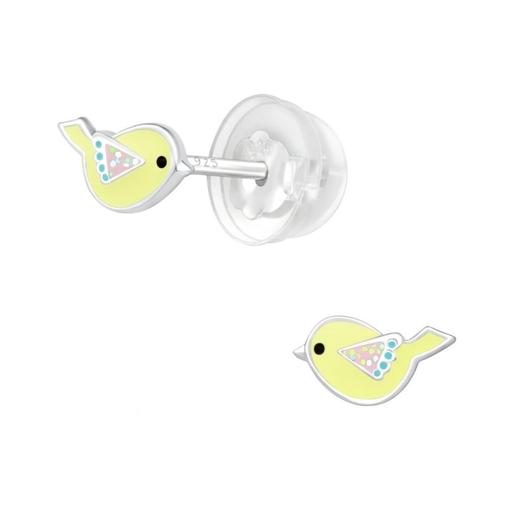 Stříbrné dětské náušnice Ptáček žlutý🐦 AG 925 ≤ 0,5 g
