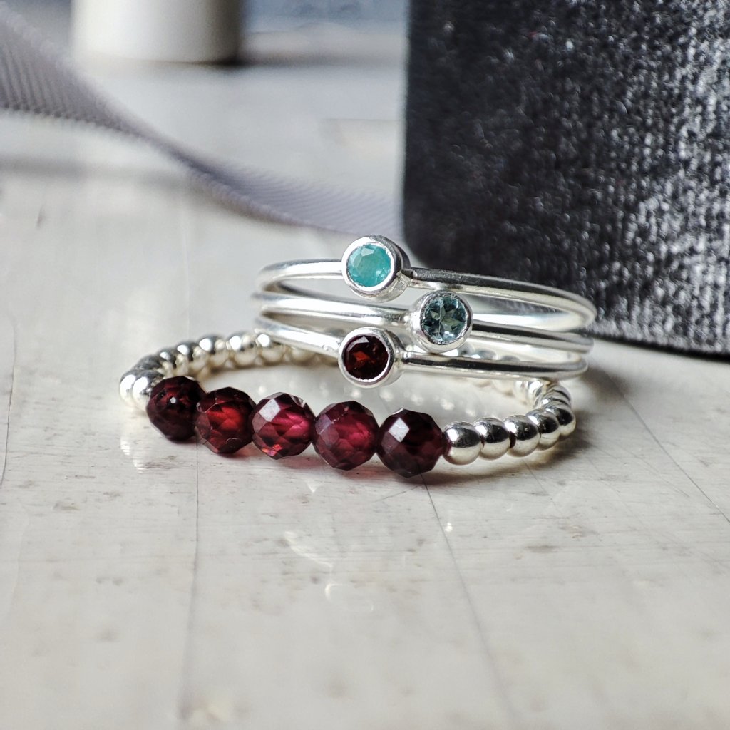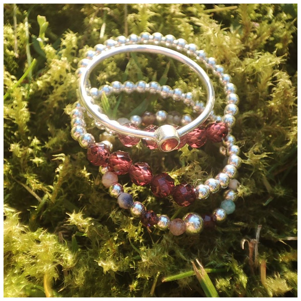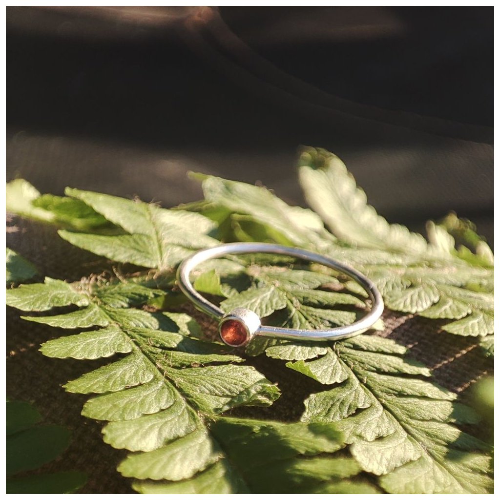Prstýnek ze stříbra s přírodním polodrahokamem granátem.